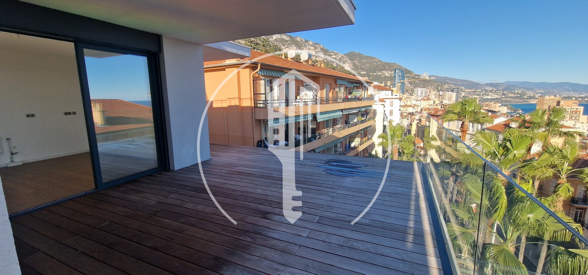 Ce magnifique penthouse de 156 m², situé au 7e et dernier étage d’une nouvelle résidence à Beausoleil se trouvant seulement à 5 mn a pieds du carré d'or de Monaco , celui ci vous offre une vaste terrasse de 58 m² avec une petite piscine, vous permettant de profiter pleinement de la vue dégagée sur l’horizon et la mer.