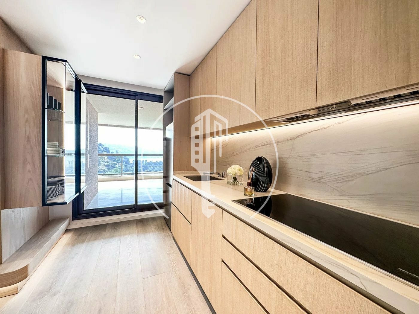 La terrasse spacieuse s’ouvre sur une vue panoramique spectaculaire sur la mer Méditerranée et le Cap Martin – une véritable expression de l’art de vivre raffiné.