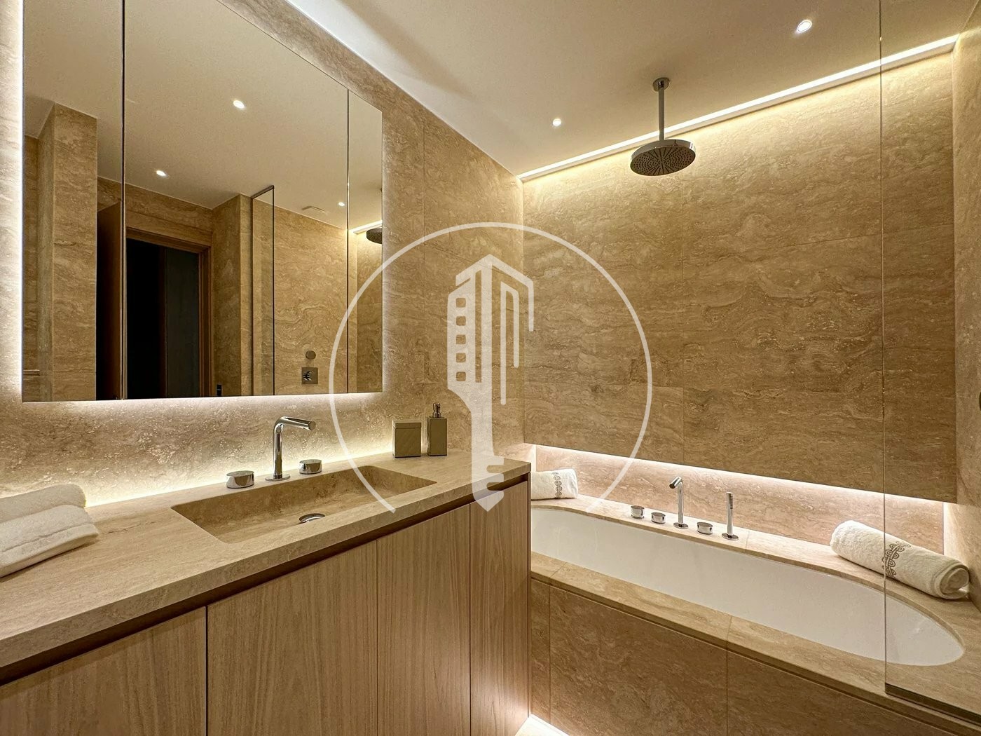 L’appartement se compose d’un hall d’entrée, d’un vaste séjour et salle à manger, d’une cuisine équipée ouverte sur le salon, de deux chambres élégantes avec salles de bains attenantes, d’un WC invité ainsi que d’une terrasse spacieuse.