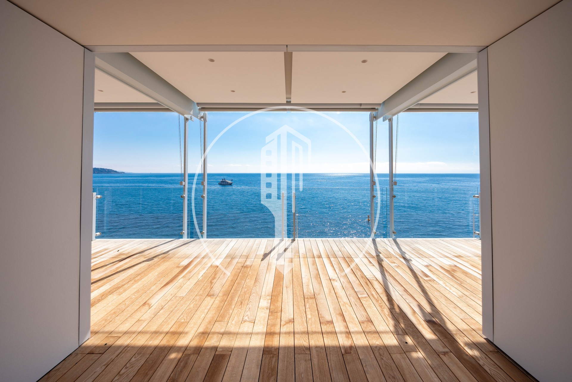 Dès l’entrée, les volumes impressionnent. Les 528 m² d’intérieurs offrent une sensation d’ouverture spectaculaire, prolongée par 151 m² de terrasses suspendues entre ciel et Méditerranée. Le regard se perd entre le bleu profond de la mer et l’élégance du port de Monaco.