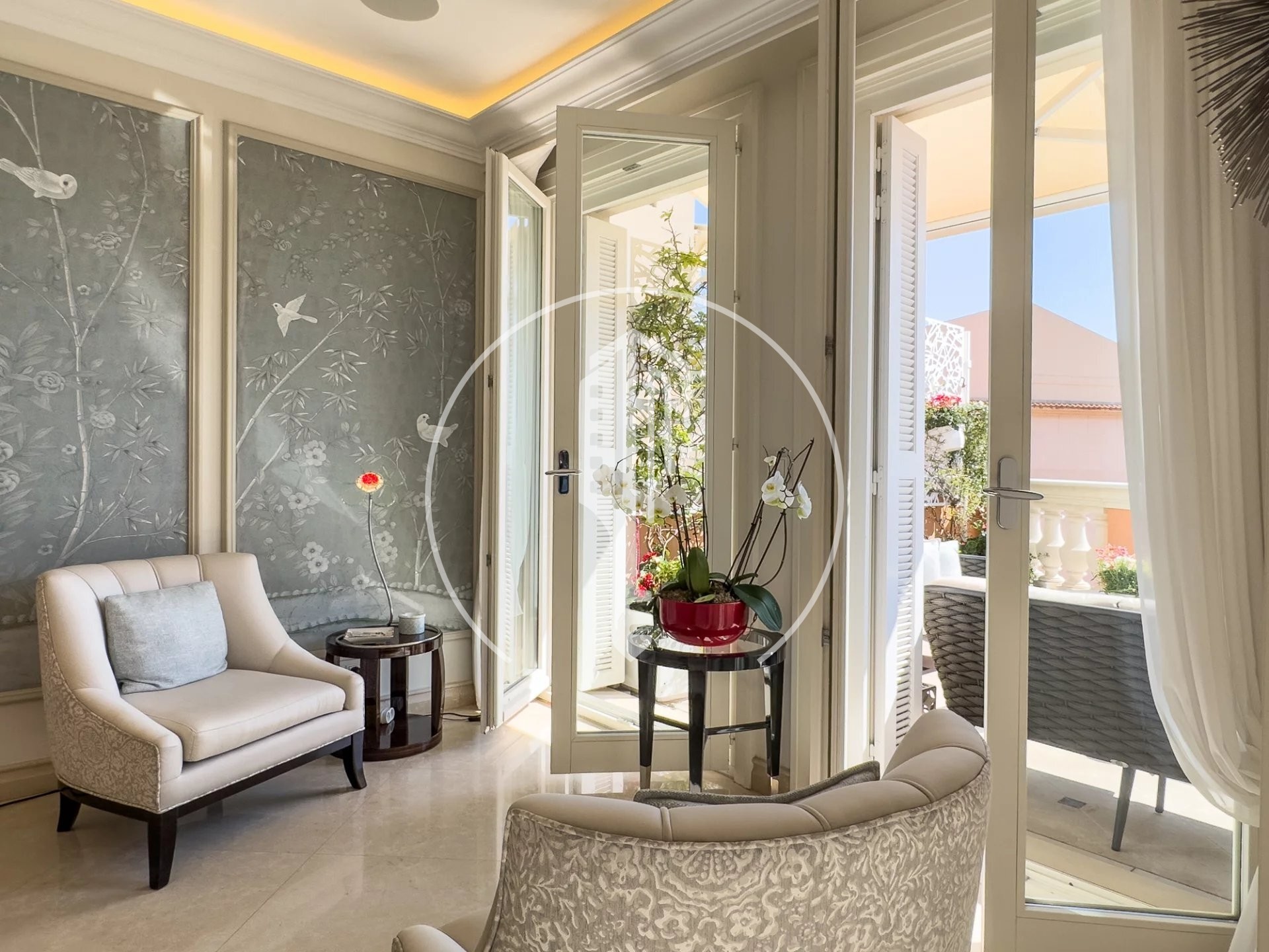 - Au 5ème étage : un superbe et lumineux ; salon confortable, parfait pour lire ou recevoir des invités, avec 1 terrasse donnant sur le Palais Princier, et un jardin d'hiver séparé.