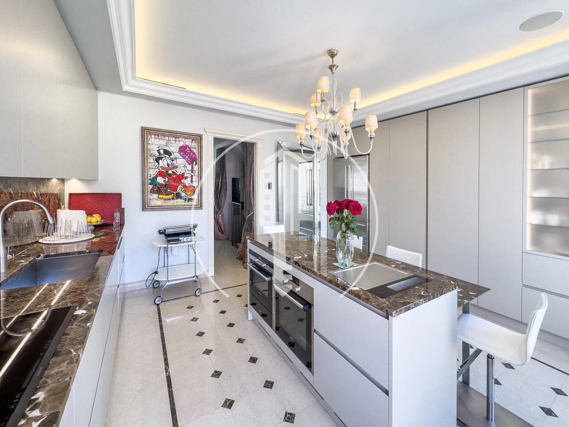 - Au 4ème étage : le salon/salle à manger principal, avec des vues fabuleuses, une cuisine séparée avec un grand îlot.