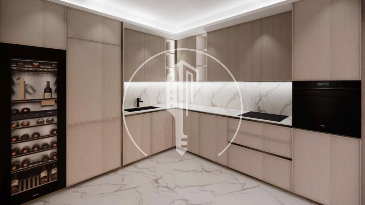 Entrée, dégagement, double et lumineux salon - salle à manger avec bar et grande terrasse donnant sur le Casino et ses jardins ainsi que la mer, trois chambres, spacieuses, avec salles de bains attenantes et dressings, cuisine entièrement équipée, une buanderie, toilettes pour invités, une chambre de service.