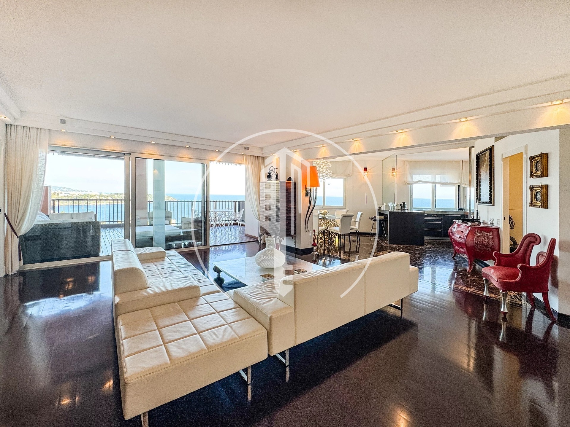 Superbe appartement de 4/5 pièces, idéal pour une famille, situé au sein d'une résidence de standing, dotée d'un service de conciergerie disponible 24h/24 et propose des équipements exceptionnels, notamment une piscine privée réservée aux résidents. Ce cadre de vie privilégié assure sécurité et tranquillité dans un environnement chic et raffiné. Situé en étage élevé, cet appartement bénéficie d'une vue imprenable sur la mer grâce à une magnifique terrasse, offrant un panoramas à couper le souffle tout au long de la journée. Récemment rénové avec des matériaux nobles, ce bien spacieux et lumineux allie élégance et confort. L'appartement propose un agencement idéal, comprenant un vaste double séjour, une cuisine équipée, des chambres spacieuses et un bureau discret et fonctionnel. Ne manquez pas cette occasion rare d'acquérir un bien d'exception, alliant confort, prestige et vue panoramique sur la mer. Ce bien est proposé à la vente avec 2 parkings et 1 cave.