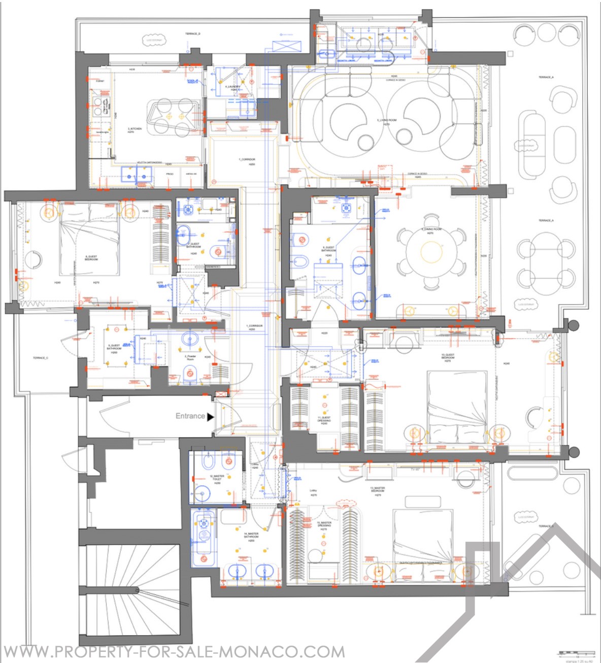 Il se compose de trois grandes chambres, chacune disposant de sa salle de bain attenante et de son dressing, d’un vaste séjour double avec coin salle à manger ouvrant sur une grande terrasse offrant une vue spectaculaire sur la mer et le Casino, ainsi que d’un bar élégant. Une cuisine entièrement équipée avec buanderie privée, une chambre de service et des toilettes invités complètent cet ensemble raffiné.