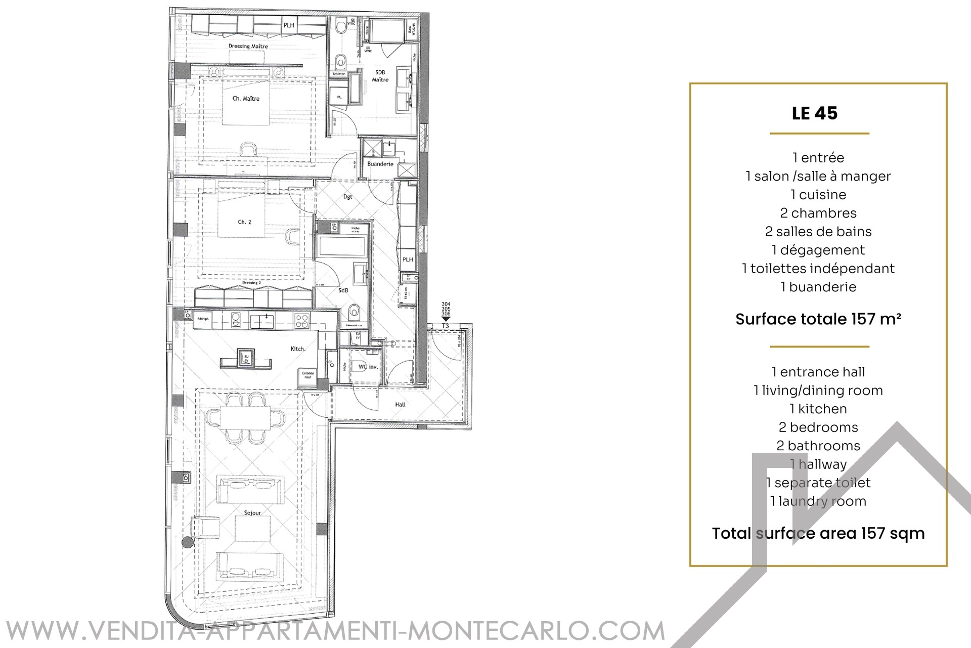 D’une surface généreuse de 157 m², ce bien a été pensé dans les moindres détails avec des matériaux de qualité supérieure et une attention particulière portée au confort, à la fonctionnalité et à l’esthétique contemporaine.